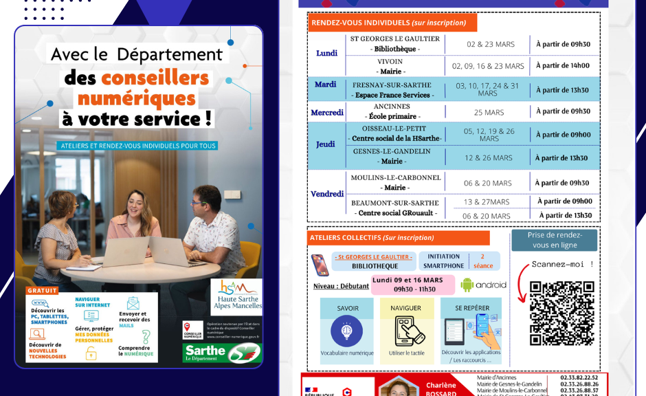 Une convention de partenariat a été signée entre la Communauté de communes Haute Sarthe Alpes Mancelles et le Conseil Départemental de la Sarthe (employeur) pour déployer l’accompagnement numérique des usagers sur notre territoire.